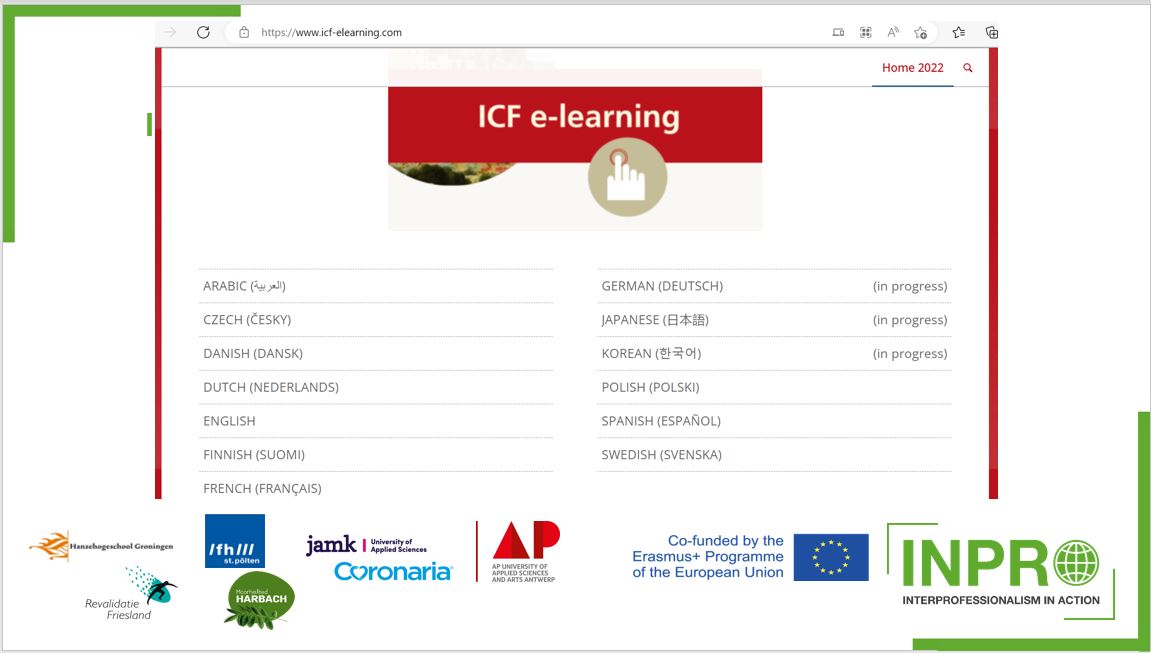 Vanuit het INPRO consortium heel goed ICF nieuws! De ICF is als centrale taal gekozen binnen het INPRO project die tot doel heeft de interprofessionele (IP) samenwerking tussen zorgverleners te versterken. Zo is er een IP competentieraamwerk omschreven die zowel door zorgverleners als ook door studenten gebruikt kan worden, zijn er verschillende IP leermodules ontwikkeld en uitgetest én zijn er Handleidingen ontwikkeld voor het opzetten van verschillende samenwerkingsvormen. Gisteravond ontvingen we het goede nieuws dat de ICF e-learning nu ook in de Nederlandse taal te volgen is. Handig voor zorgverleners, onderwijs, en onderzoek!